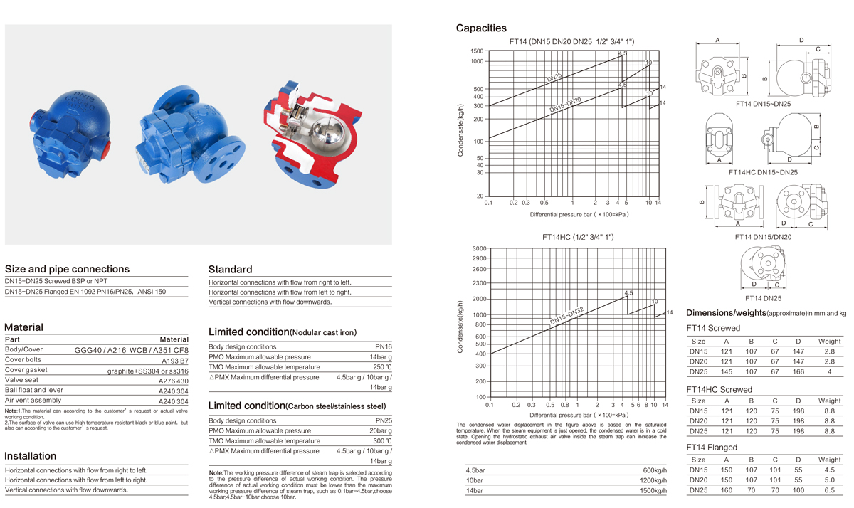 進(jìn)口杠桿浮球式蒸汽疏水閥主要技術(shù)參數(shù)