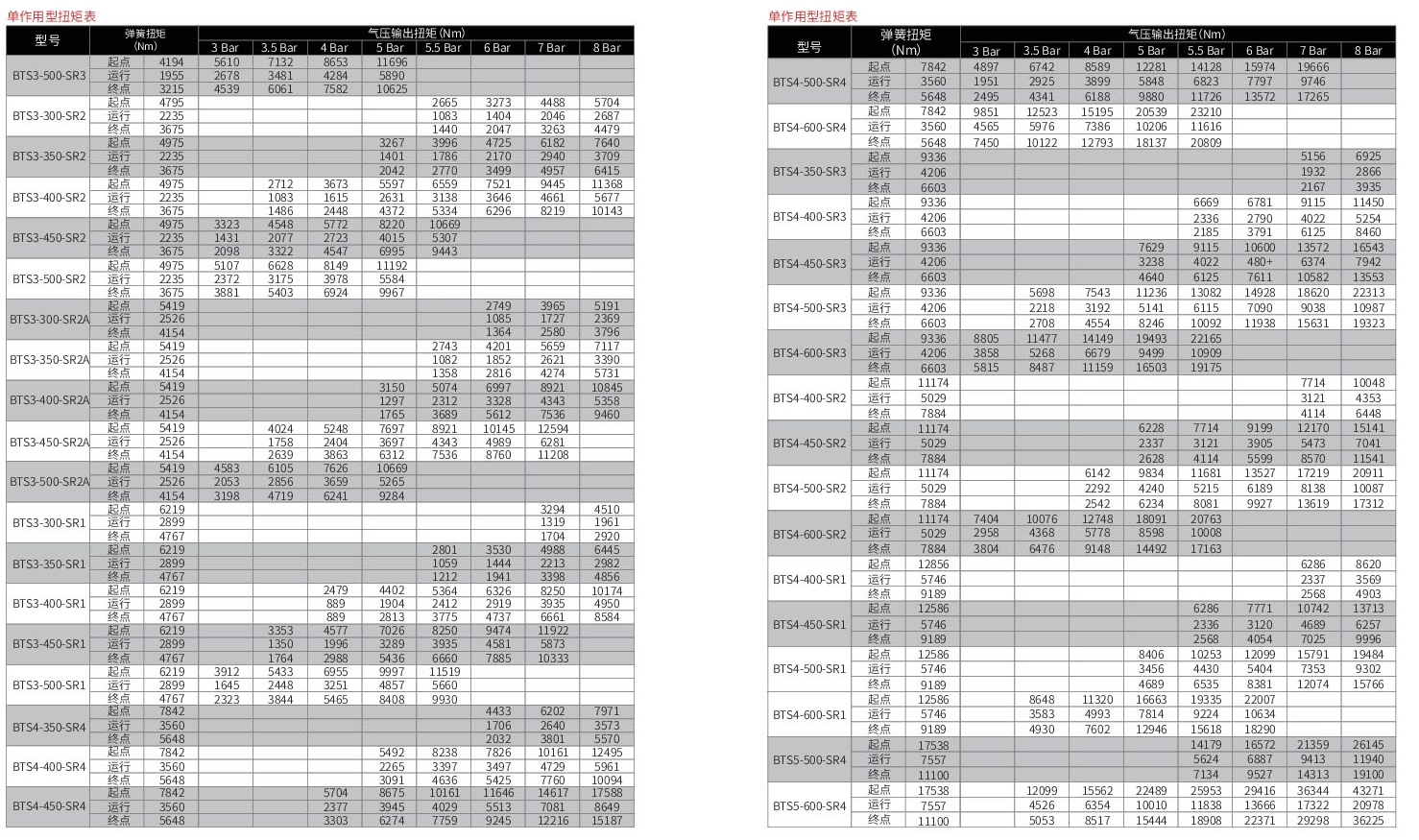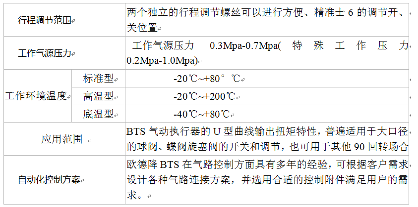 BTS系列雙作用執行器可以提供最大270000NM的扭矩輸出,單作用執行器可以提供最大120000NM的扭矩輸出(工作壓力3-7)