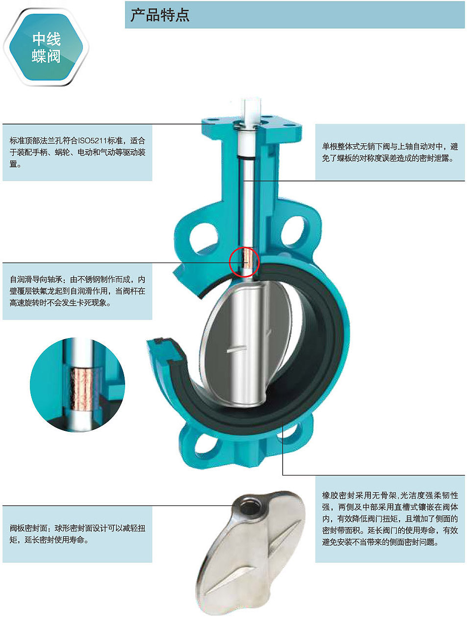 進(jìn)口對(duì)夾式中線蝶閥作為一種用來實(shí)現(xiàn)管路系統(tǒng)通斷及流量控制的部件,已在石油、化工、冶金、水電等許多領(lǐng)域中得到極為廣泛地應(yīng)用。在已公知的蝶閥技術(shù)中,其密封形式多采用密封結(jié)構(gòu),密封材料為橡膠、聚四氟乙烯等。由于結(jié)構(gòu)特征的限制,不適應(yīng)耐高溫、高壓及耐腐蝕、抗磨損等行業(yè)